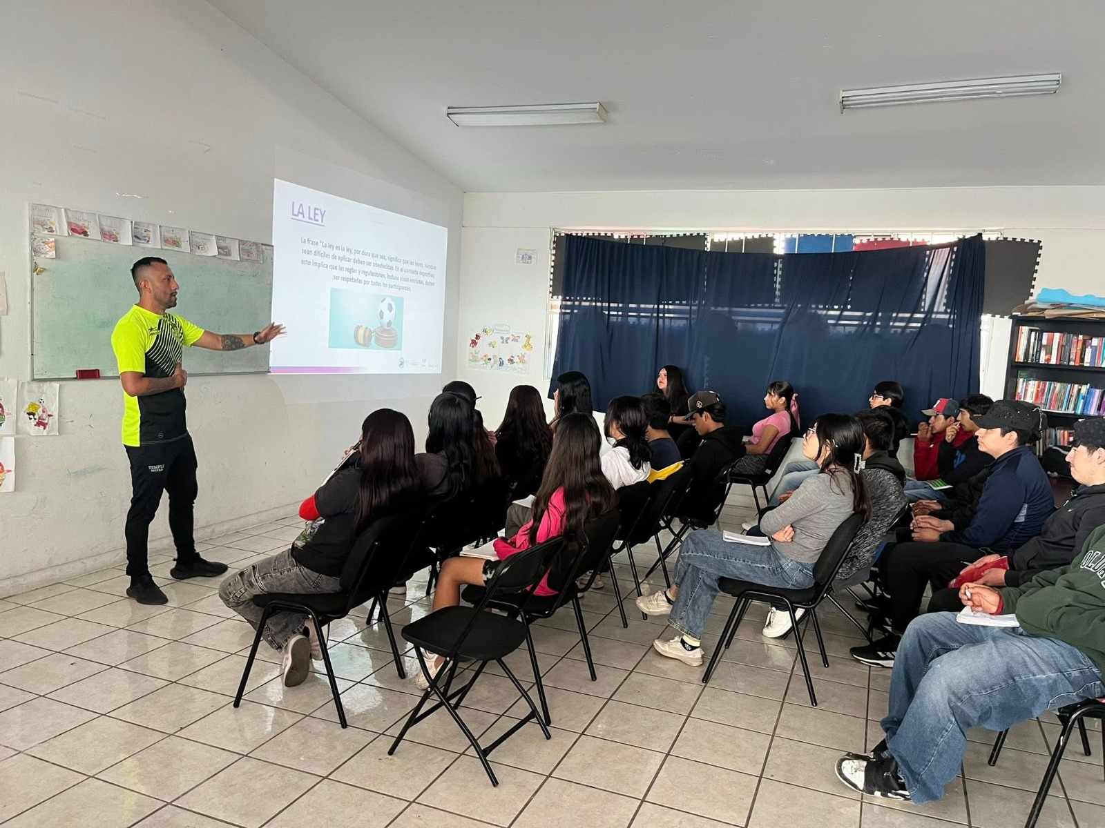 Durante el taller, las y los participantes aprendieron el reglamento de fútbol 7, así como su estructura, elementos, dinámica y reanudación del juego, normas disciplinarias, reglas especiales y la autoridad arbitral, lo que fortalece la organización operativa y participativa previo al torneo.