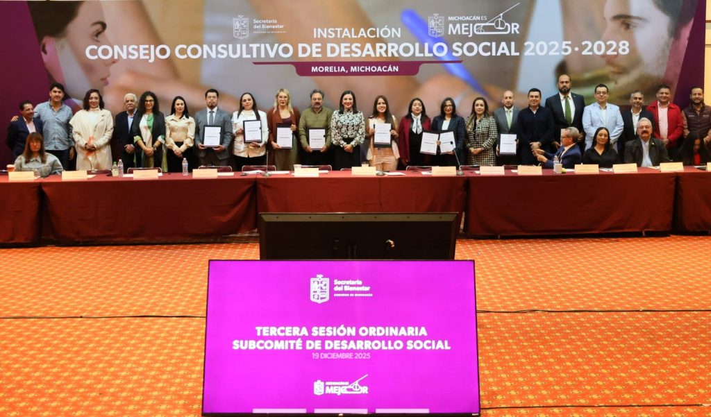 Morelia, Michoacán, 20 de diciembre de 2025.- Con el objetivo de fortalecer la planeación y la participación ciudadana en la política social del estado, la Secretaría del Bienestar (Sedebi) instaló el Consejo Consultivo 2025–2028 y llevó a cabo la tercera Sesión Ordinaria del Subcomité de Desarrollo Social, como parte de la agenda estatal de bienestar en Michoacán.
